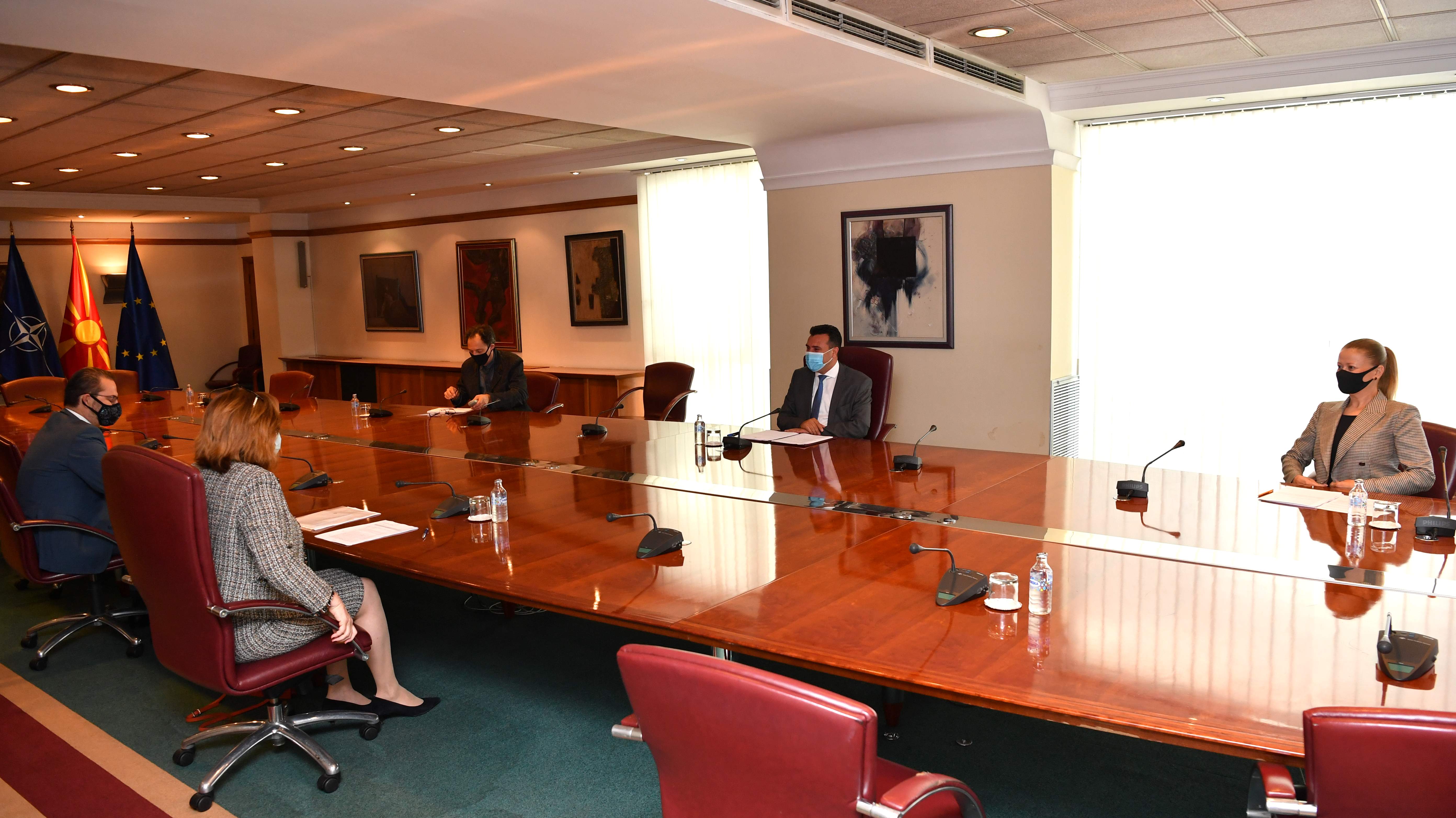 Kryeministri Zaev me përfaqësuesit e BERZH-it: Vazhdon bashkëpunimi në drejtim të intensifikimit të projekteve për zhvillim ekonomik dhe përmirësimin e cilësisë së jetës së qytetarëve