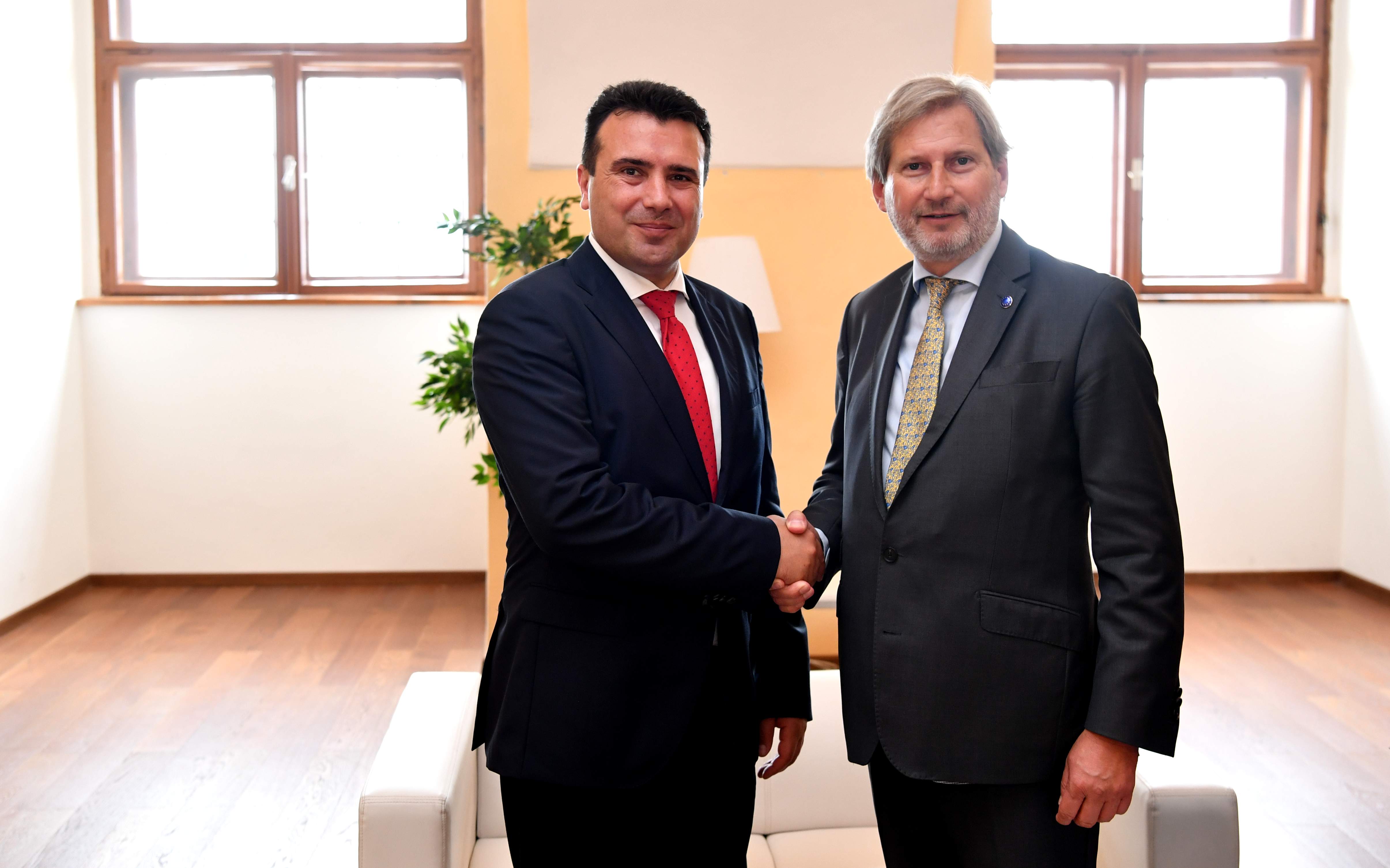 Takim i Kryeministrit Zaev dhe eurokomasarit Han: Vërtetohet angazhimi i Republikës së Maqedonisë së Veriut që këtë vit të marrë datë për bisedime me BE-në